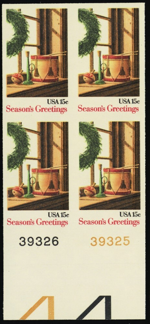 1843a, Mint VF NH 15¢ Imperforate Block W/PL# Error - Stuart Katz