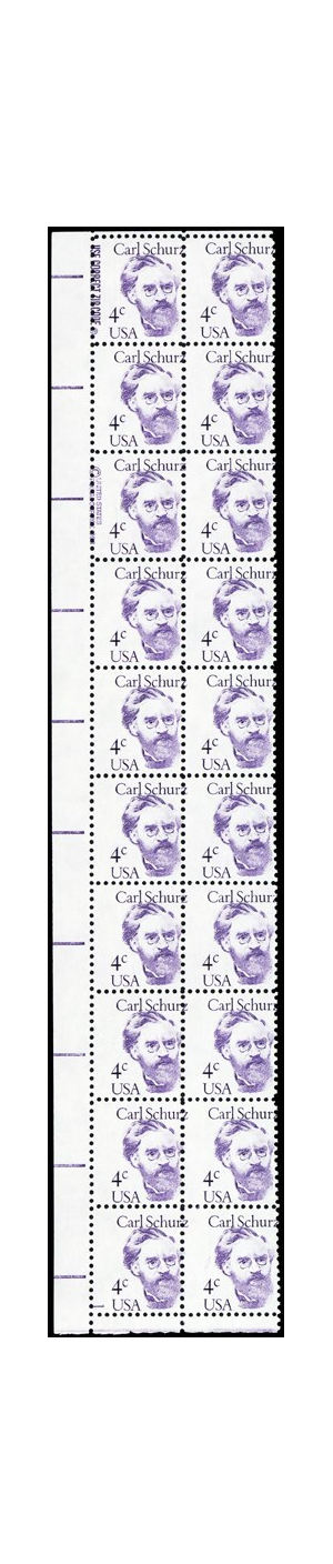 1847, 4¢ Carl Schurz Misperforated ERROR Strip of 20 Stamps - Stuart Katz