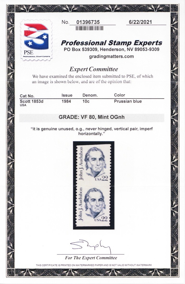 1853d, Mint VF NH 22¢ Imperforate Between Error PSE Certificate * Stuart Katz