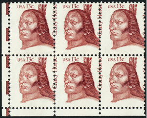 1855, MNH 13¢ Misperf Shift Freak Error Block of Six - Stuart Katz