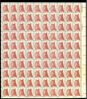 1855 Var, COMPLETE SHEET OF 100 - DOUBLE PAPER ERROR WITH BLUE TAPE SLICE