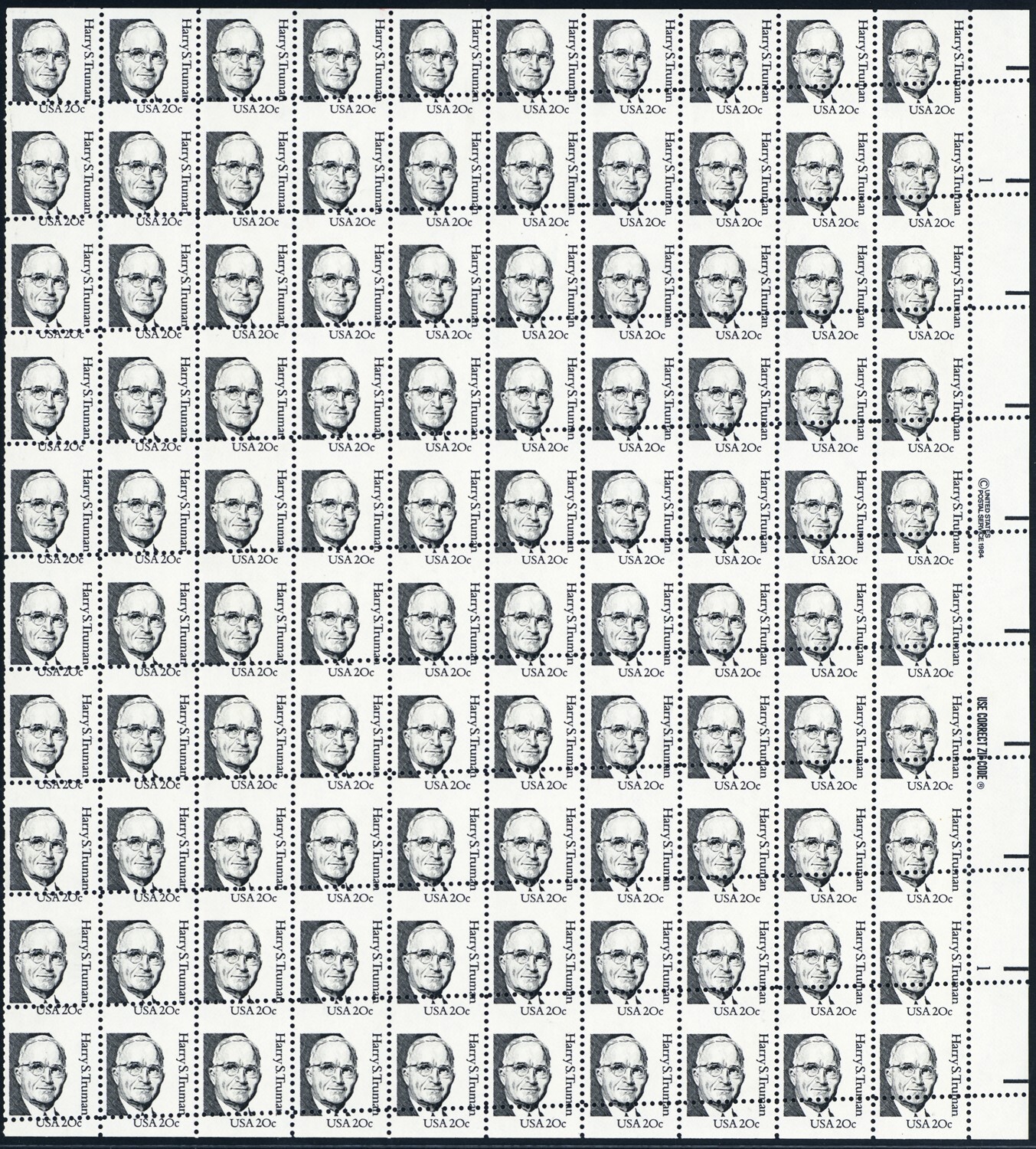 1862, MNH 20¢ Misperforated Error Complete Sheet of 100 Stamps - Stuart Katz