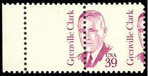1867, MNH 39c Grenville Clark - RARE MISPERFORATION ERROR PAIR - Stuart Katz
