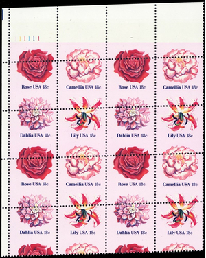 1879a, 18¢ Flowers Misperforated ERROR Plate # Block of 16 Stamps - Stuart Katz