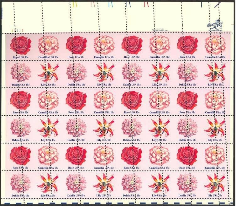 1879a, 18c Flower Issue - LARGE MISPERFORATION SHIFT - RARE COMPLETE SHEET OF 48