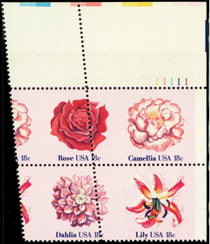 1879a, Large Misperforation Shift ERROR Plate Block of Flowers - Stuart Katz