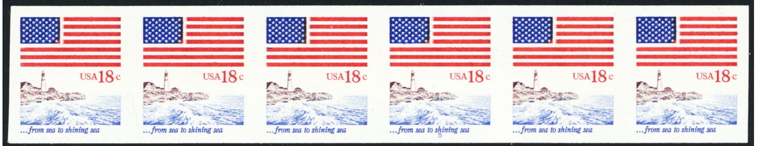 1891a, Mint NH 18¢ Imperforate PL #5 Strip of Six Stamps Error * Stuart Katz