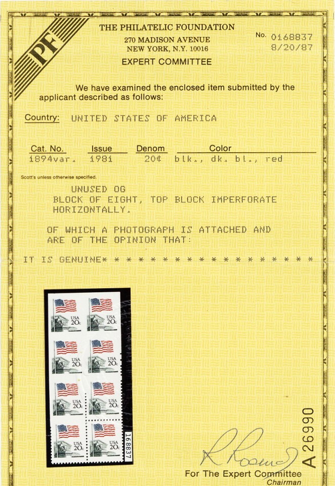Due to the high cost of obtaining certificates we will only refund the cost of the stamp and not the cost of the certificate for stamps that sell for less than $250 that come back with a negative certificate. Stamps that sell for above $250 will receive a full refund for both the price of the stamp and cost of the certificate if it should come back not as described. For U.S. stamps only certificates from either APS, PSE or from the Philatelic Foundation are accepted, however "graded" certificates or "encased" items are not accepted.