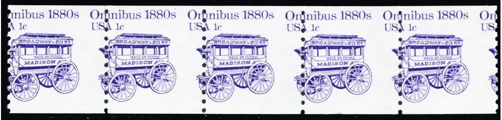 1897, Mint NH 1¢ Misperfed Error Strip of Five Stamps - Stuart Katz
