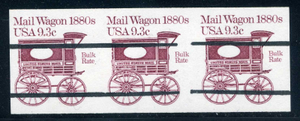 1903b, Imperf 9.3¢ Mail Wagon Coil Precancel Gap Strip /3, Mint NH