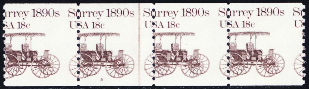 1907, Mint NH 18¢ Misperfed Strip of Four With PL #8 * Stuart Katz