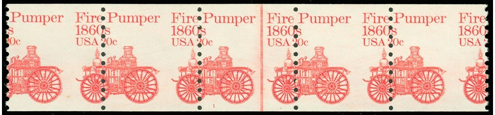 1908, 20¢ Misperfed PNC #1 Error Coil Strip Of Five Stamps * Stuart Katz