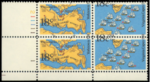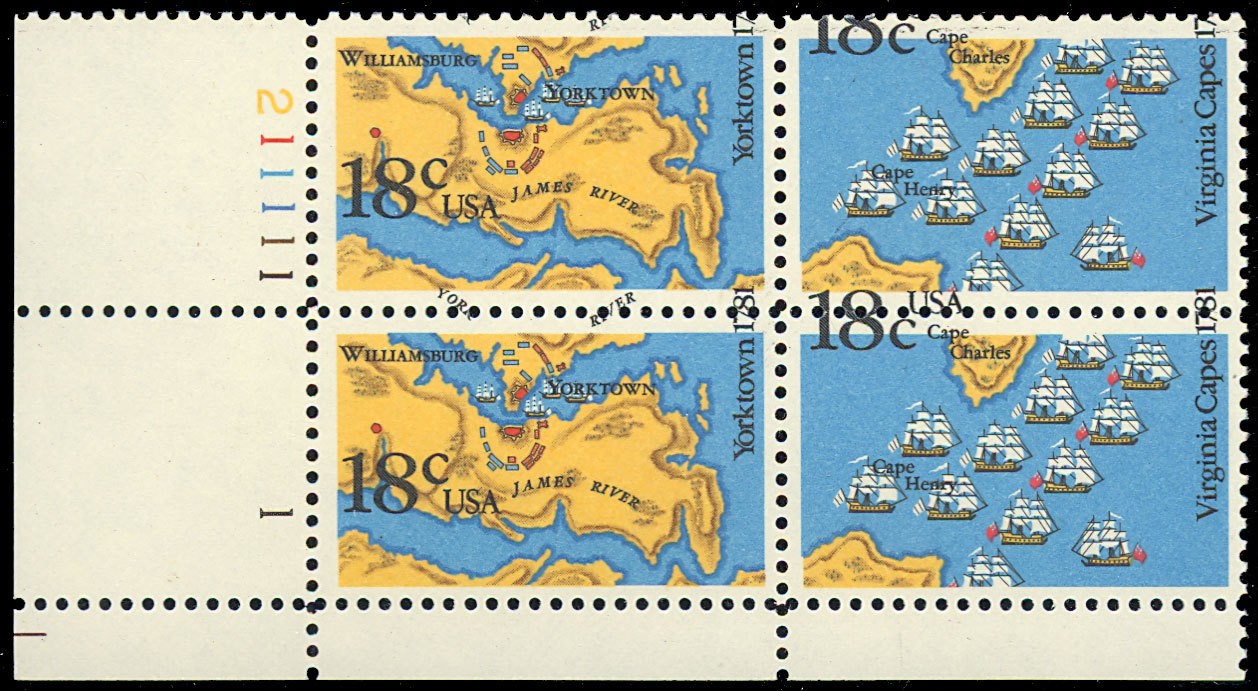 1938a Color Shift MAJOR ERROR - PL# Block - 18¢ Yorktown - MNH - Stuart Katz