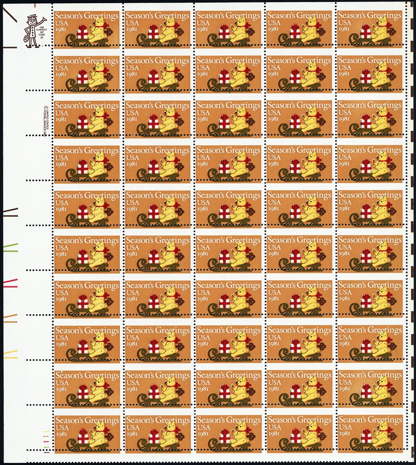1940, MNH 20¢ Xmas Misperfed Error Sheet of 50 Stamps - Stuart Katz