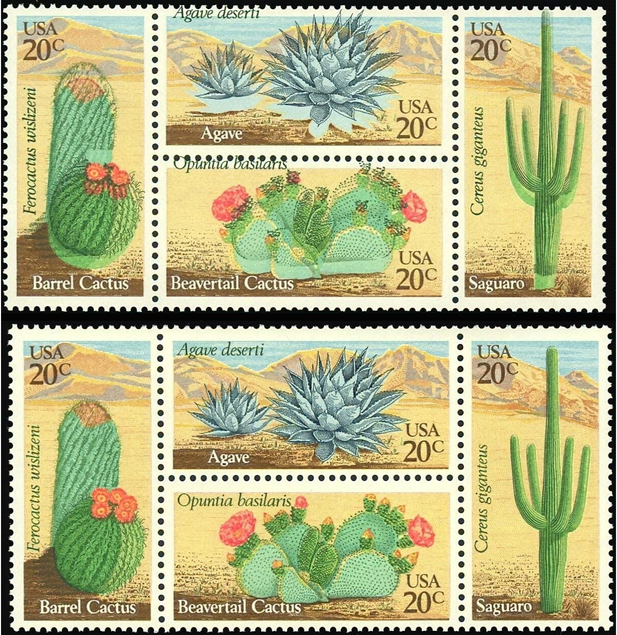 1945a, Large Color Shift ERROR Block - 20¢ Cactus Mint NH - Stuart Katz