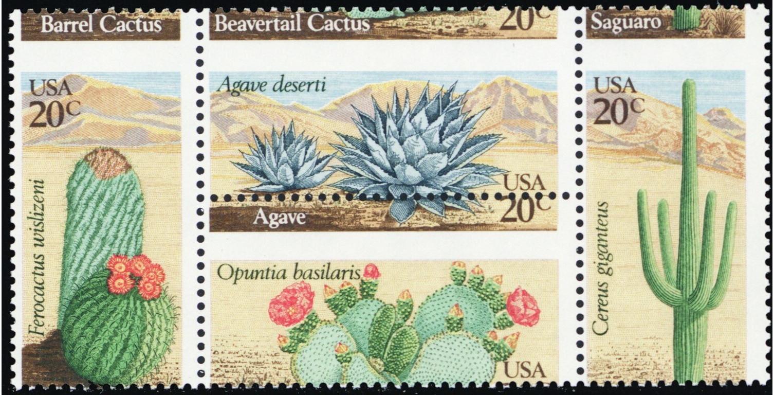 1945a, Mint NH 20¢ Cactus Misperforated Error Block - Stuart Katz