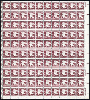 1946, MNH 20¢ Misperfed Sheet of 100 Stamps Freaky Error - Stuart Katz