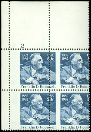 1950, 20¢ Misperfed Error Plate Block FDR Stamps * Stuart Katz
