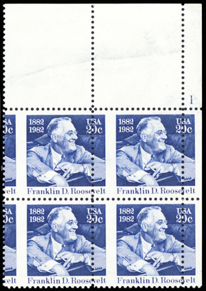 1950, Large Misperforated ERROR 20¢ Franklin Roosevelt Plate Block - Stuart Katz