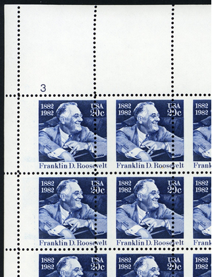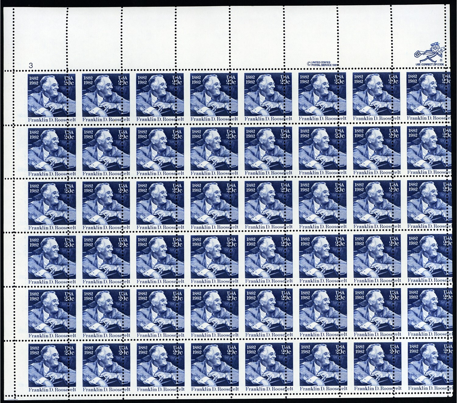 1950, Mint NH 20¢ - Full Misperforated Error Sheet - FDR Stamps - Stuart Katz