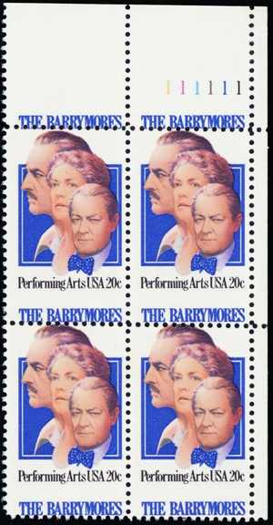 2012 Large Misperforated ERROR 20¢ The Barrymores Plate Block MNH - Stuart Katz