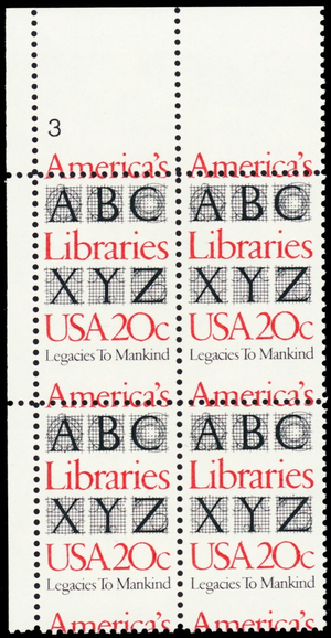 2015, MNH 20¢ Misperfed Plate Block Error -**- Stuart Katz