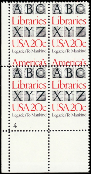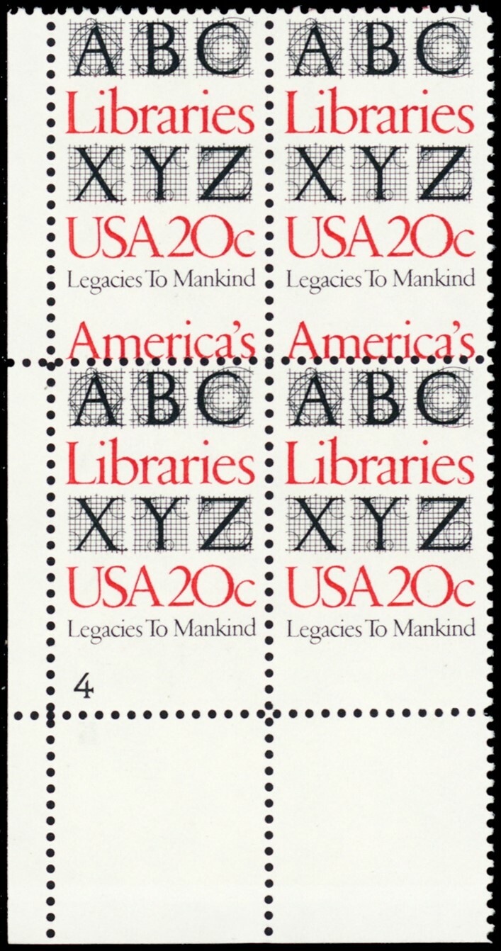 2015, MNH 20¢ Misperfed Plate Block PL# Captured Error - Stuart Katz