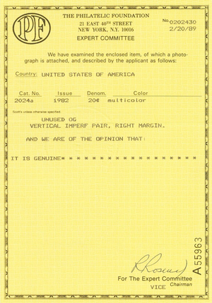 2024a, Mint 20¢ VF NH - Imperforate Error Pair With PFC - Stuart Katz