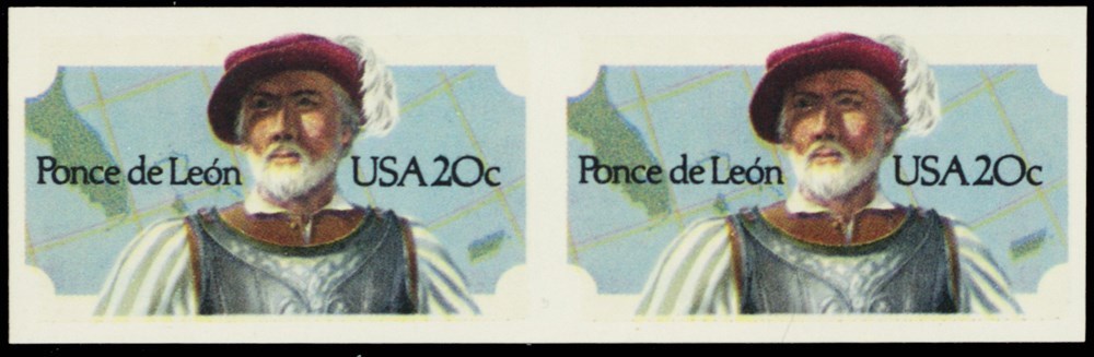 2024a MNH XF 20¢ Ponce de Leon Imperforate Pair ERROR Cat $425.00 Stuart Katz