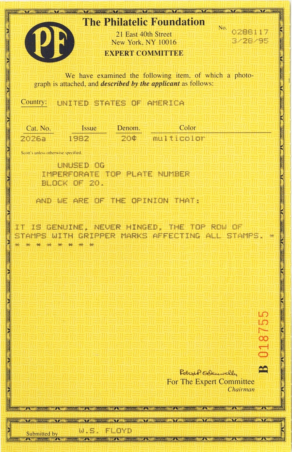 2026a, Mint NH 20¢ Imperforate PB of 20 Stamps PFC CV $900+ Stuart Katz