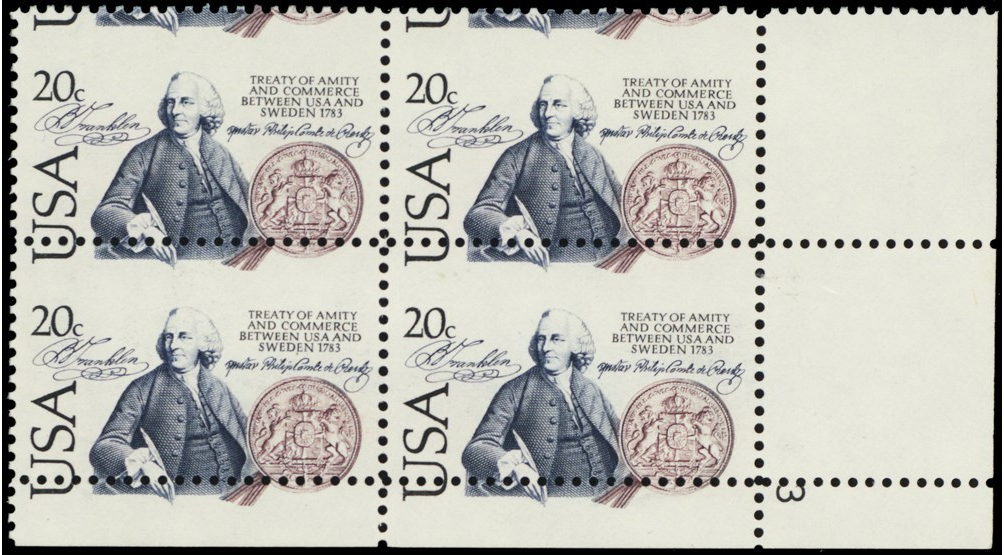 2036, Misperforated ERROR 20¢ Franklin Plate Block of Four Stamps - Stuart Katz