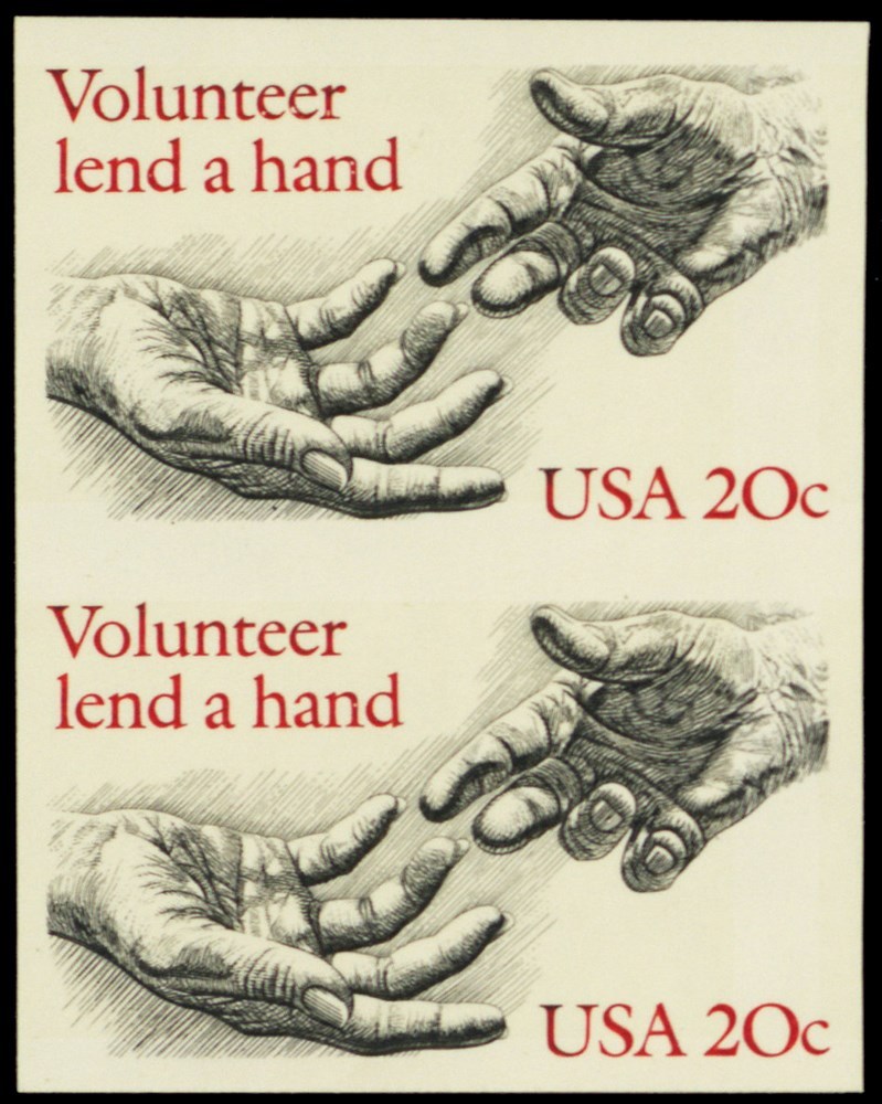 2039a, MNH 20¢ Volunteer Lend a Hand Imperforate Pair ERROR - Stuart Katz