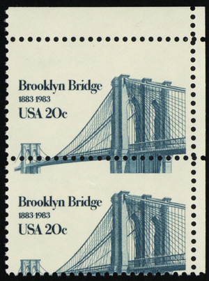 2041, MNH 20¢ Brooklyn Bridge - Misperf Error Margin Pair - Stuart Katz