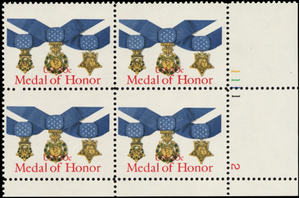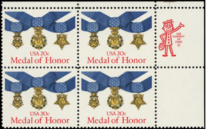 2045, Color Shift Major ERROR 20¢ Plate Block Medal of Honor - Stuart Katz