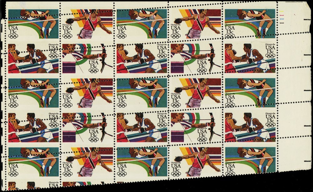 2051a, Misperforation ERROR PL# Block of 25 Stamps 13¢ Olympics - Stuart Katz