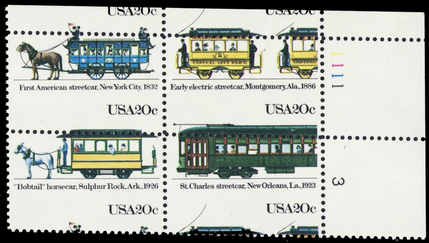 2062a, MNH 20¢ Misperfed Error Trolley Cars Plate Block of Four - Stuart Katz