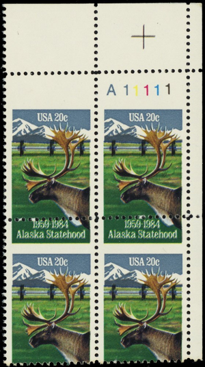 2066, Misperforated ERROR Alaska Plate Block PL# Captured on Stamp - Stuart Katz