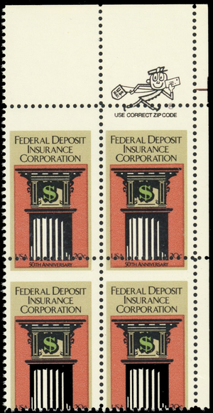 2071, Mint NH 20¢ Misperfed Error Zip Block of Four - Stuart Katz