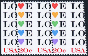 2072, MNH 20¢ Love Margin Pair - Perfs Shifted Freaky Error * Stuart Katz