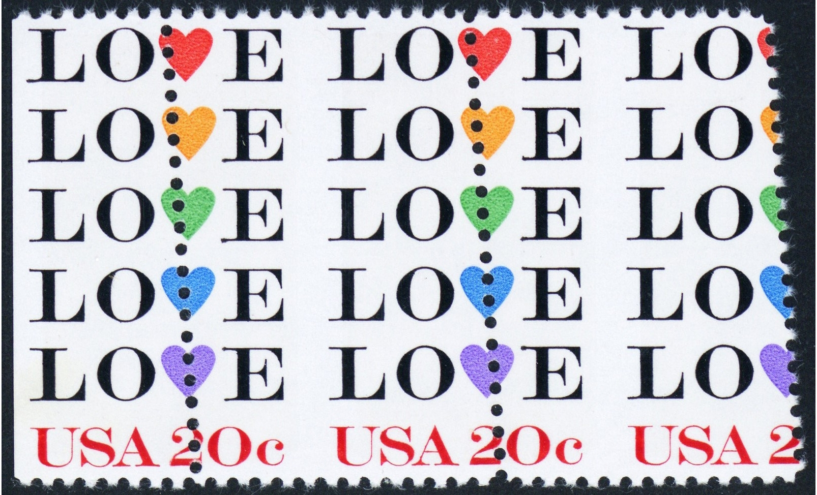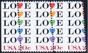 2072, MNH 20¢ Love Margin Pair - Perfs Shifted Freaky Error ** Stuart Katz
