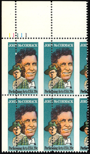 2090 Misperforated ERROR Plate block of 4 - 20¢ John McCormack MNH Stuart Katz