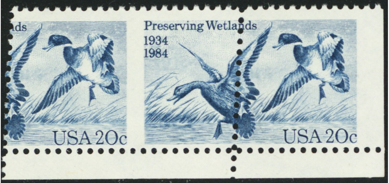 2092, Mint NH 20¢ Wetlands Ducks - Margin Copy Error - Stuart Katz
