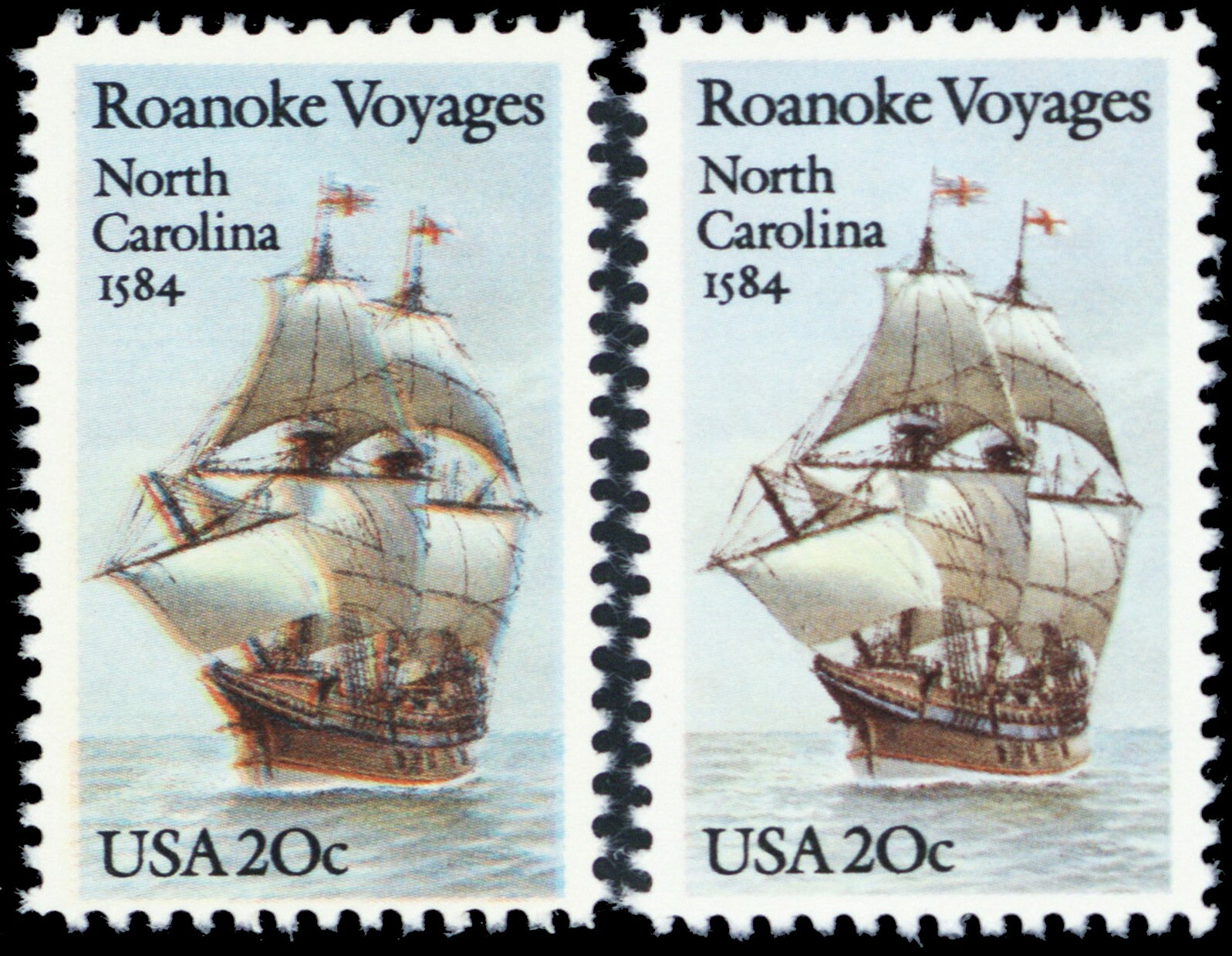 2093, MNH 20¢ Color Shifted Error With Normal - Roanoke Voyages - Stuart Katz