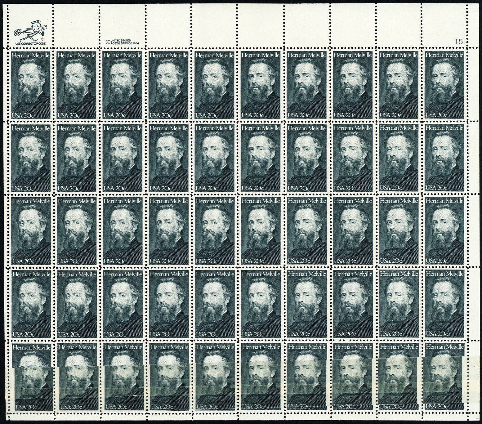 2094, MNH 20¢ Misplaced Tape Splice Error Sheet of 50 Stamps - Stuart Katz
