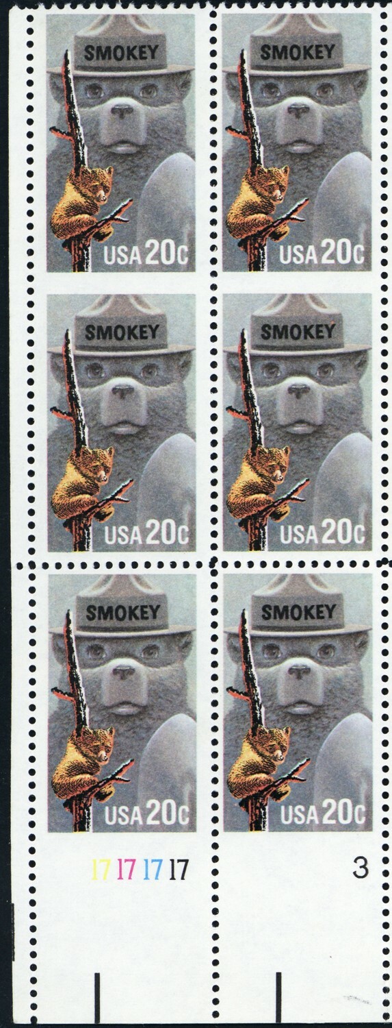 2096b, MNH 20¢ Imperforate Between Error Plate Block - Smokey Bear - Stuart Katz