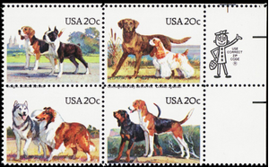 2101a, MNH 20¢ Dogs Misperforation ERROR Zip Block of Four - Stuart Katz