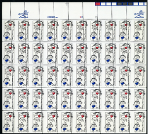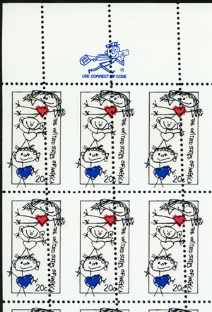 2104, MNH 20¢ Misperf Error Sheet of 50 With TWO ZIP Logos - Stuart Katz