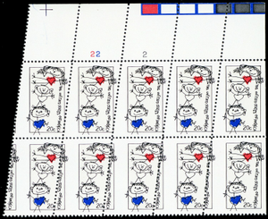 2104, MNH 20¢ Misperforated Freak Error PL# Block of 10 Stamps - Stuart Katz