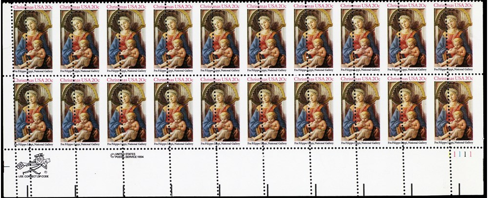 2107, Large Misperforation ERROR PL# Strip of 20 Stamps - Stuart Katz
