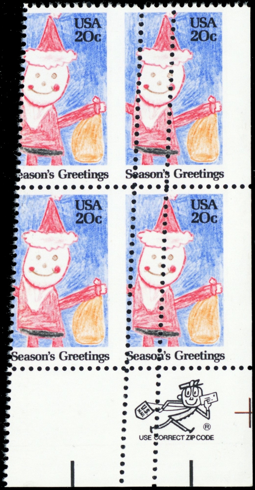 2108, MNH 20¢ Misperforated Freak Error Zip Block With Gutter - Stuart Katz